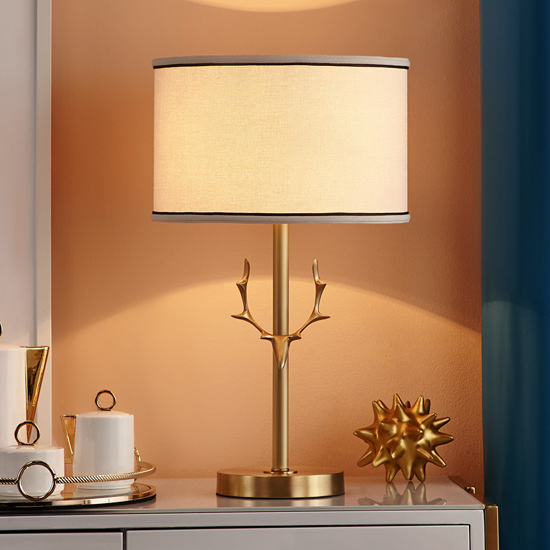 American all-copper deer table lamp simple modern study creative Nordic warm pure copper antlers bedroom bedside lamp