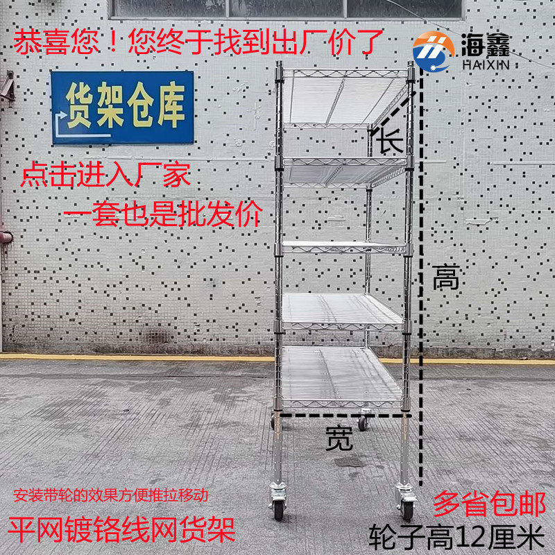 Stainless steel color mobile display stand home rack storage warehouse with wheel anti-static material rack metal shelf