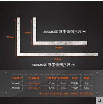 Stainless steel thickened inflection ruler 300mm stainless steel thickened inflection 500mm