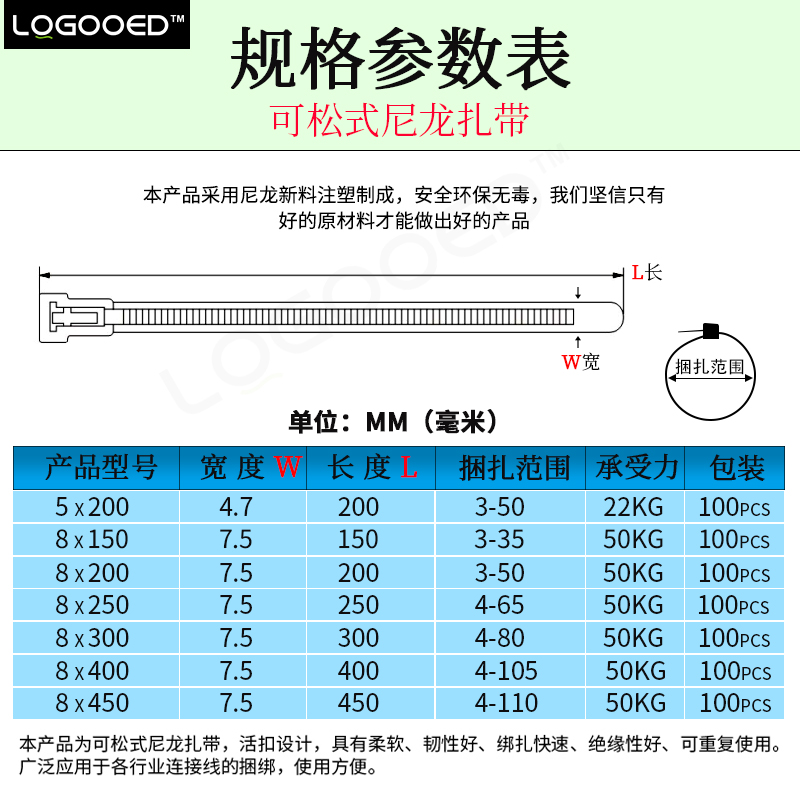 Loose nylon cable tie Large length 8x400mm Easy to remove the management line snap adjustment plastic live buckle