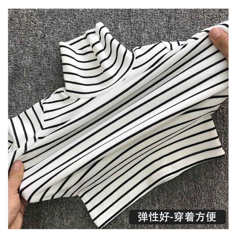 Baby high neck pullover base shirt Spring and autumn and winter men and women children 0-1-3 years old Striped long sleeve cotton T-shirt top