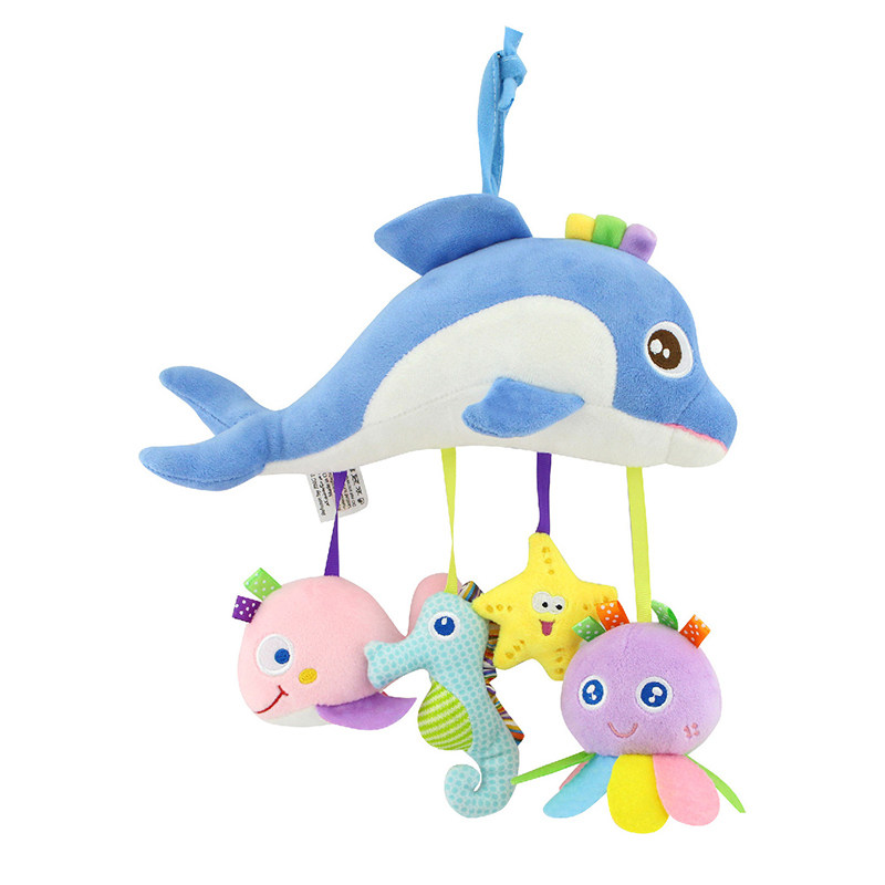 Baby trolley pendant rattle toy baby bedbell hanging newborn animal fabric soothing 0-3-6 months old