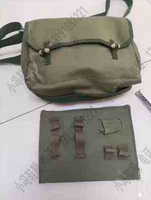 Stock 80 s six or seven parts bag with latch plate old canvas satchel military satchel backpack red age