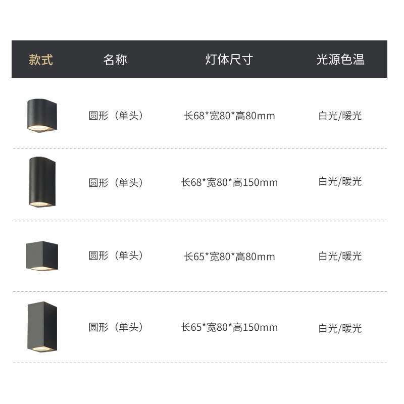 Square single head (5W white light) width 70*height 80*thick 82mm square single head (5W warm light) width 70*height 80*82mm square double head (10W white light) width