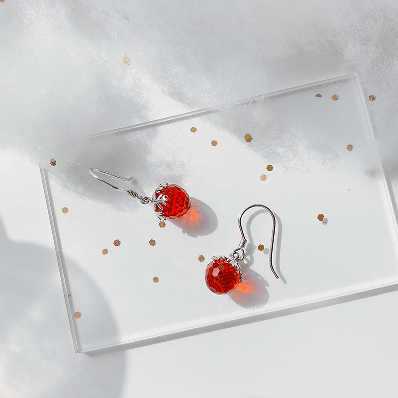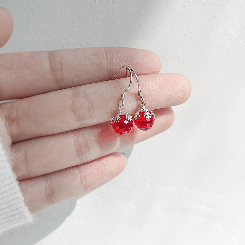 Strawberry silver earrings women's simple small fresh strawberry crystal ear hook drop earrings Korean temperament fashion wild net red earrings