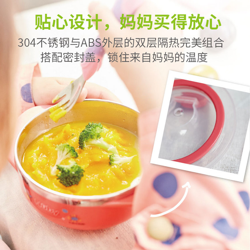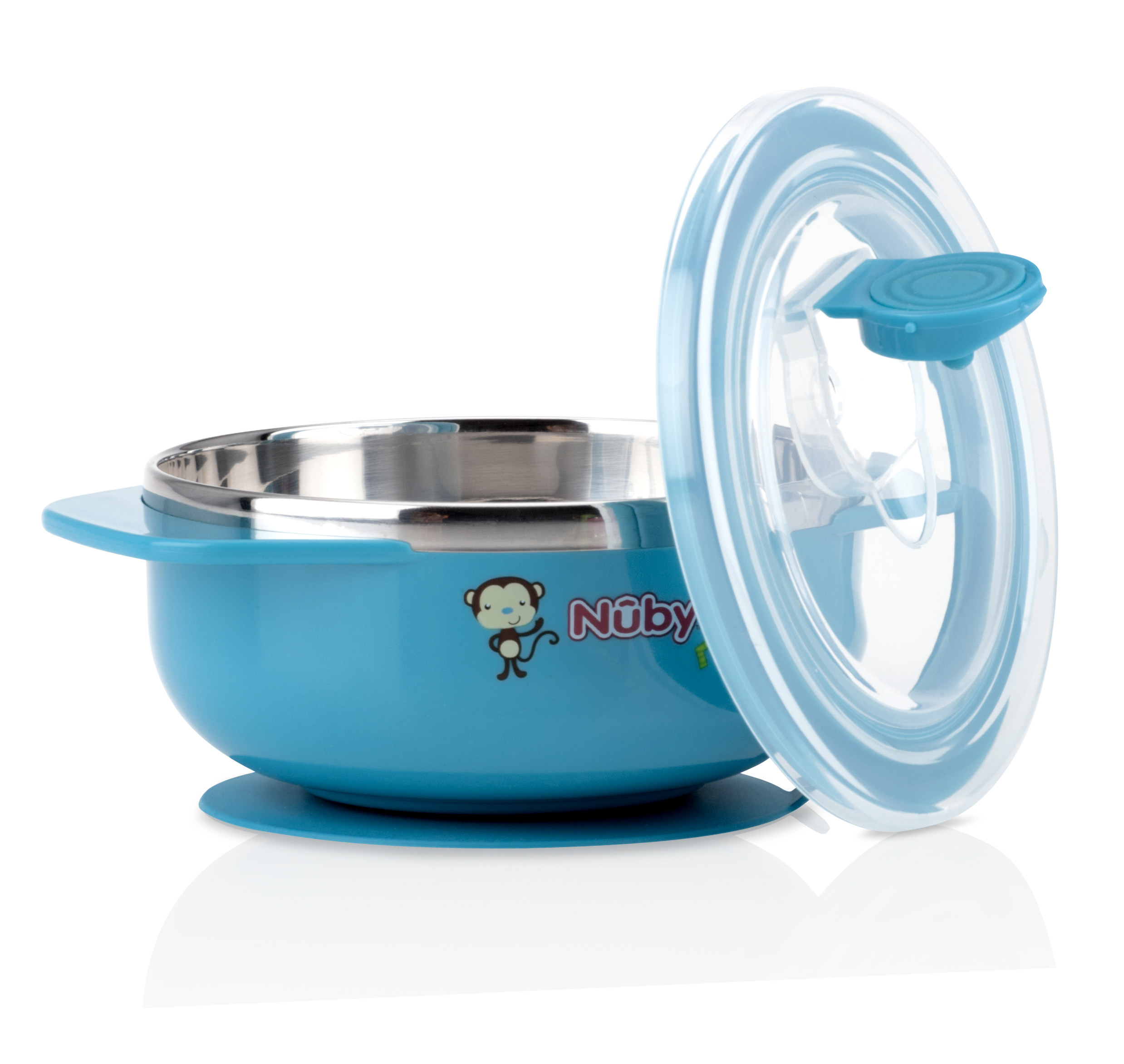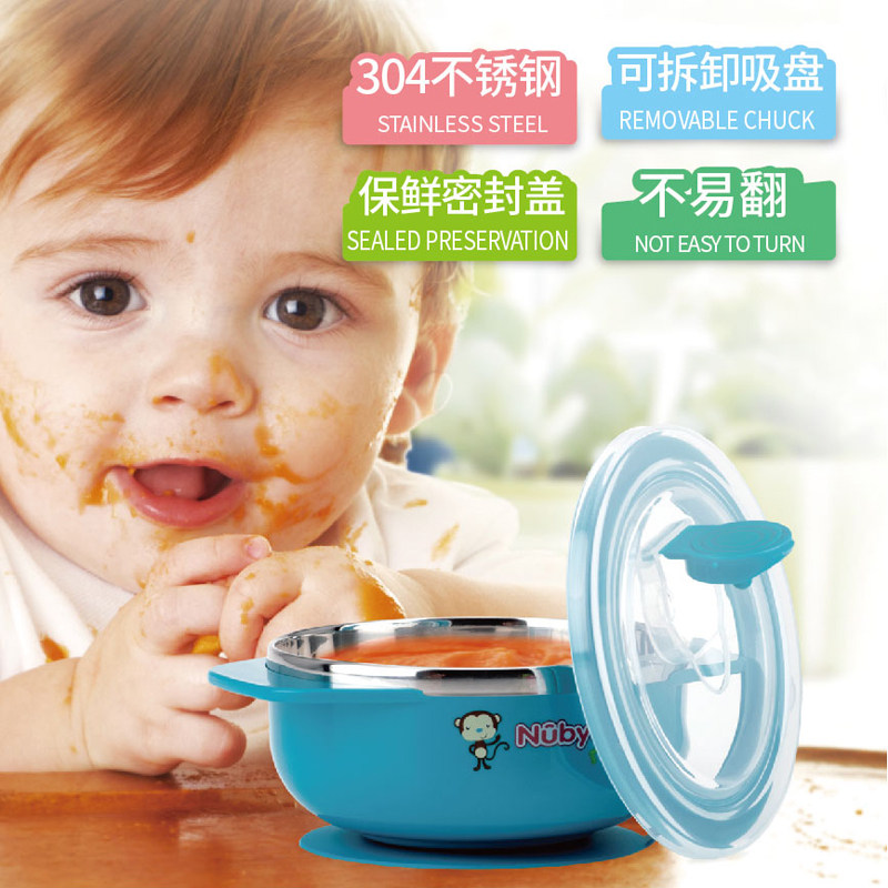 Nuby Nuby baby stainless steel water injection insulation bowl baby supplementary food sucker bowl infant eating bowl tableware