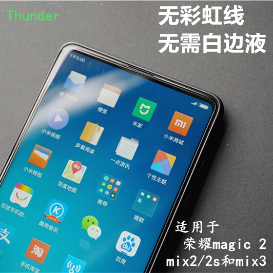 Thunder Xiaomi mix3 tempered film anti-fingerprint glass glory magic2 mobile phone protective film non-full screen no white border