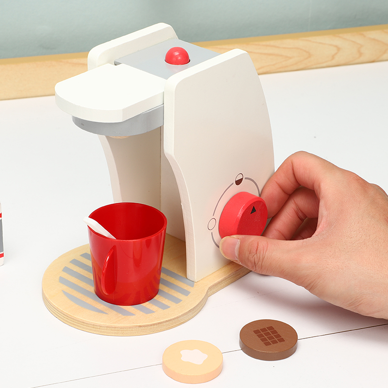 Children's simulation play house wine wooden mixer coffee machine combination bread machine cut music hands-on toys 2-6 years old