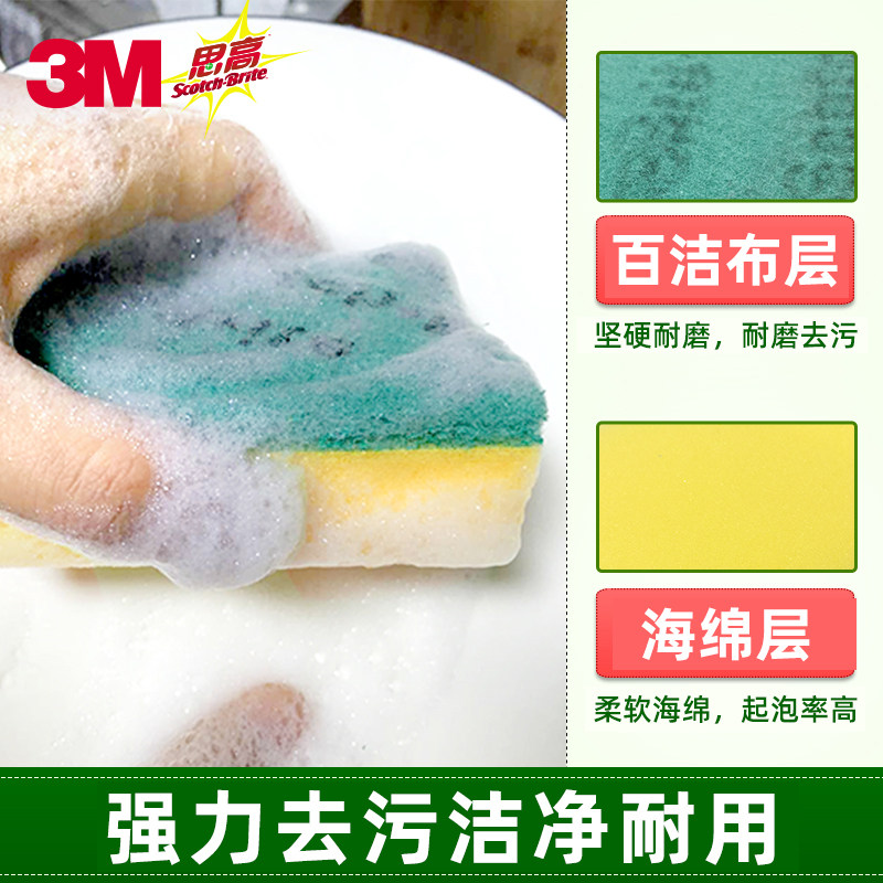 3M thinking high-sided sponge Baise cleaning cloth Dishcloth Kitchen Rag Decontamination Clean Dishwashing the magic rub not easy to stick oil