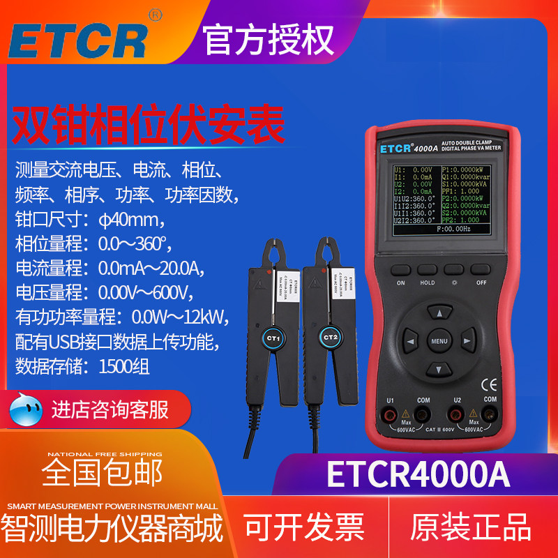 Guangzhou Iridium Thai ETCR4000A 4300 double clamp digital phase voltammeter three-phase phase meter phase angle detection