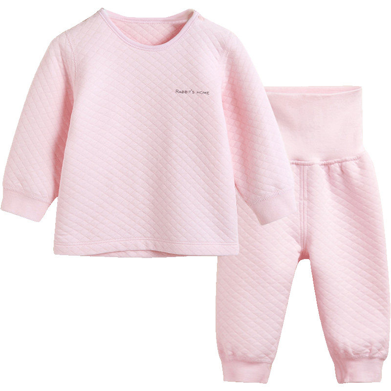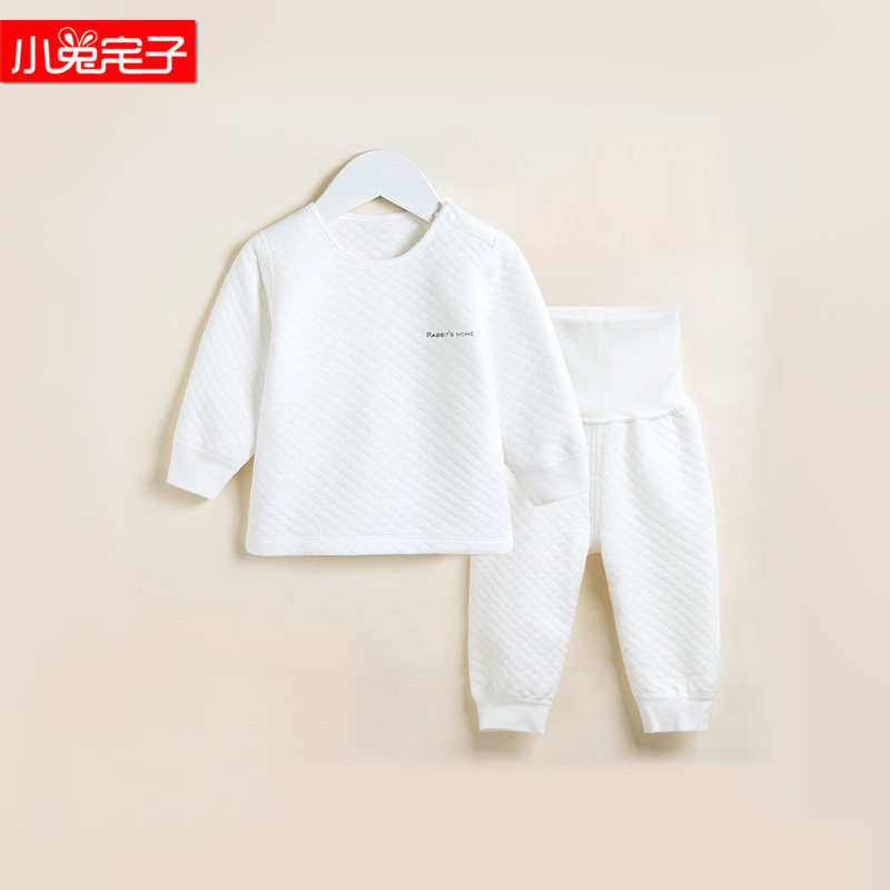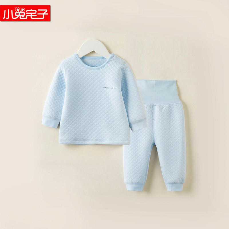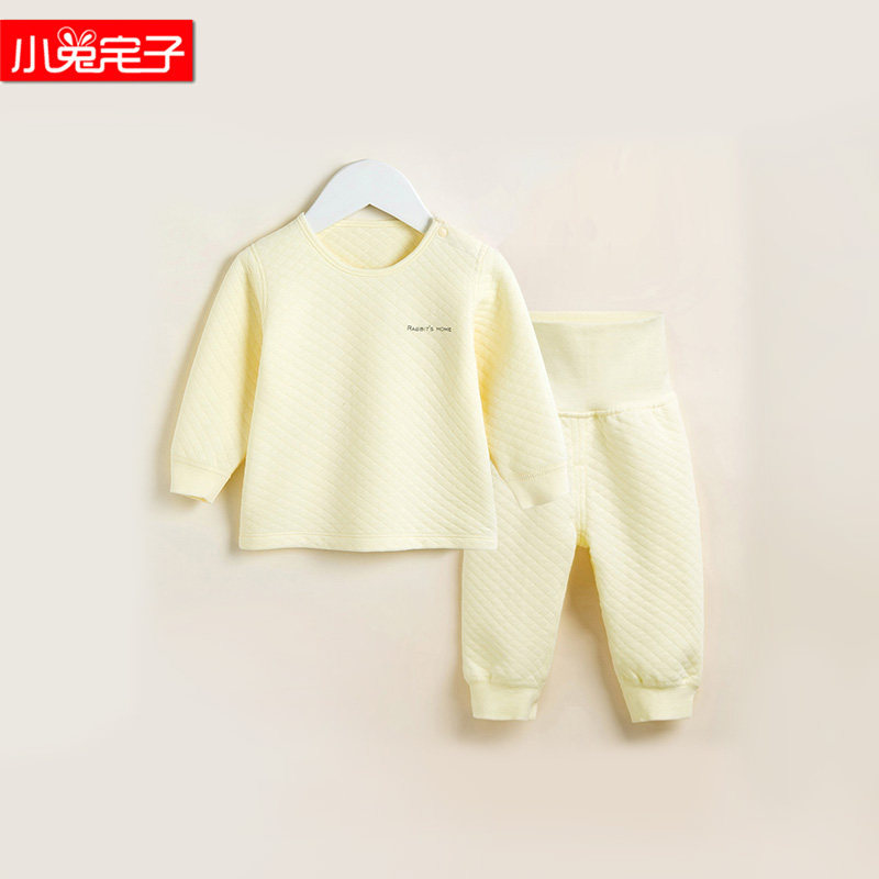 Rabbit house boy and girl baby autumn and winter air layer quilted high waist belly protection suit baby warm home clothes pajamas