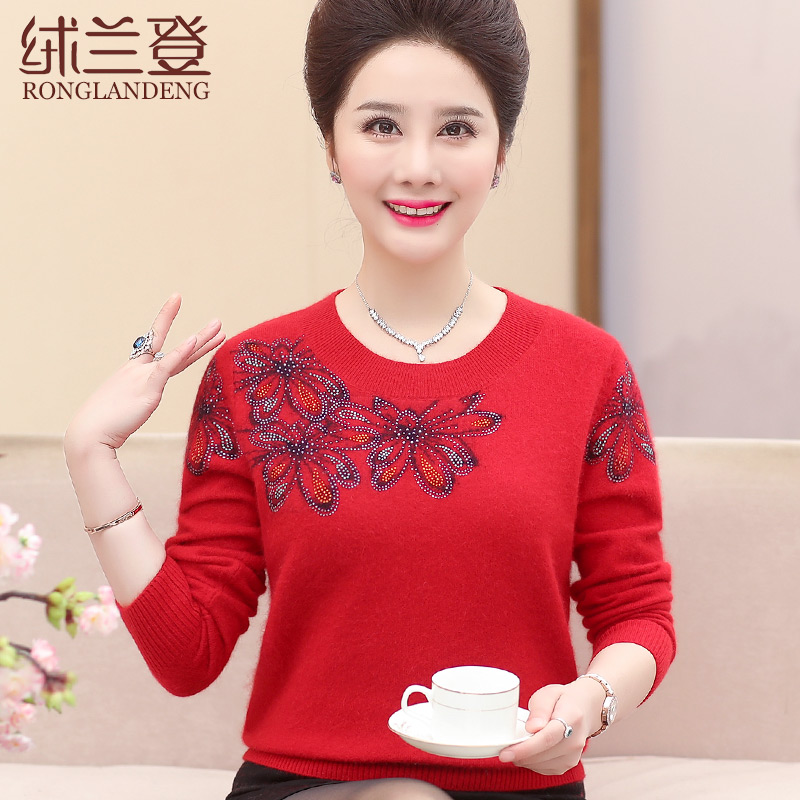 Middle-aged and elderly women's round neck sweater spring autumn winter loose mother's sweater knitted bottoming shirt plus size 50 years old