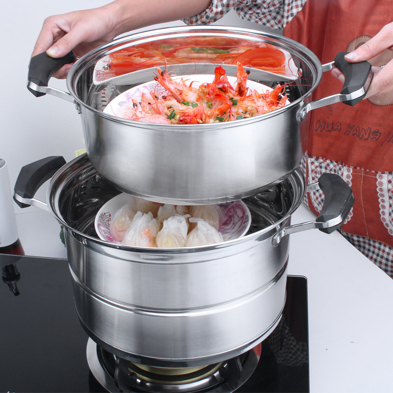 Ruicheng steamer stainless steel 2 3 layers thickened household multi-layer steamer gas stove double bottom steamed bun induction cooker special pot