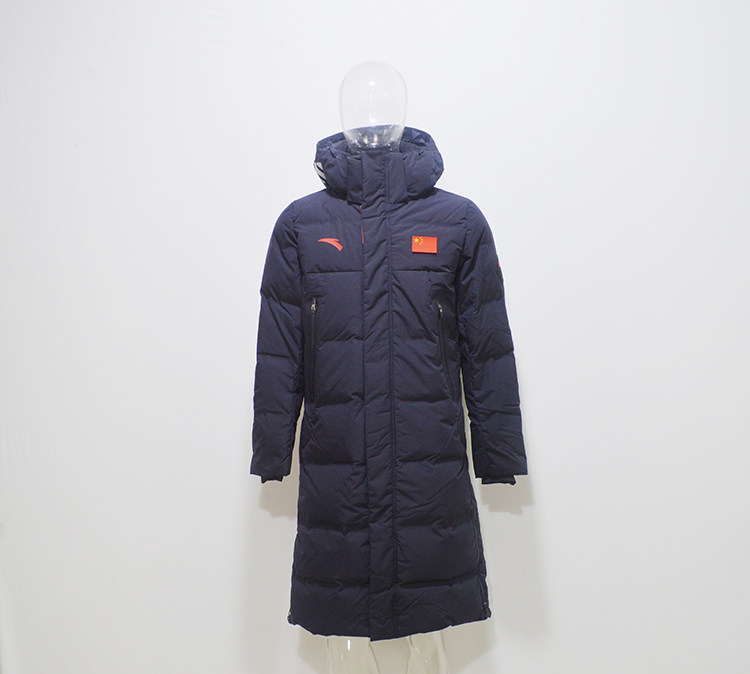ANTA Anta 2018 sponsorship of the Chinese team's national team with a hat down and a cold coat over a knee long down