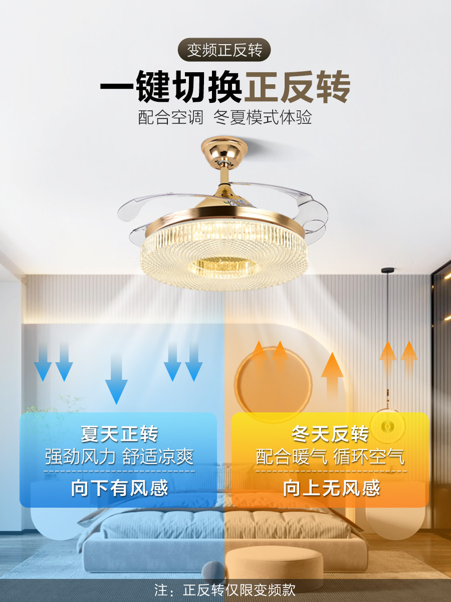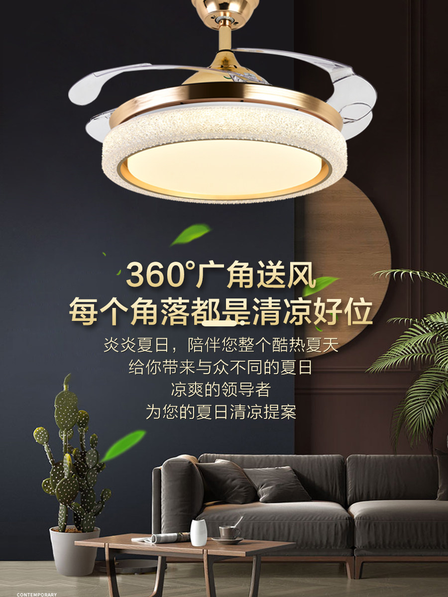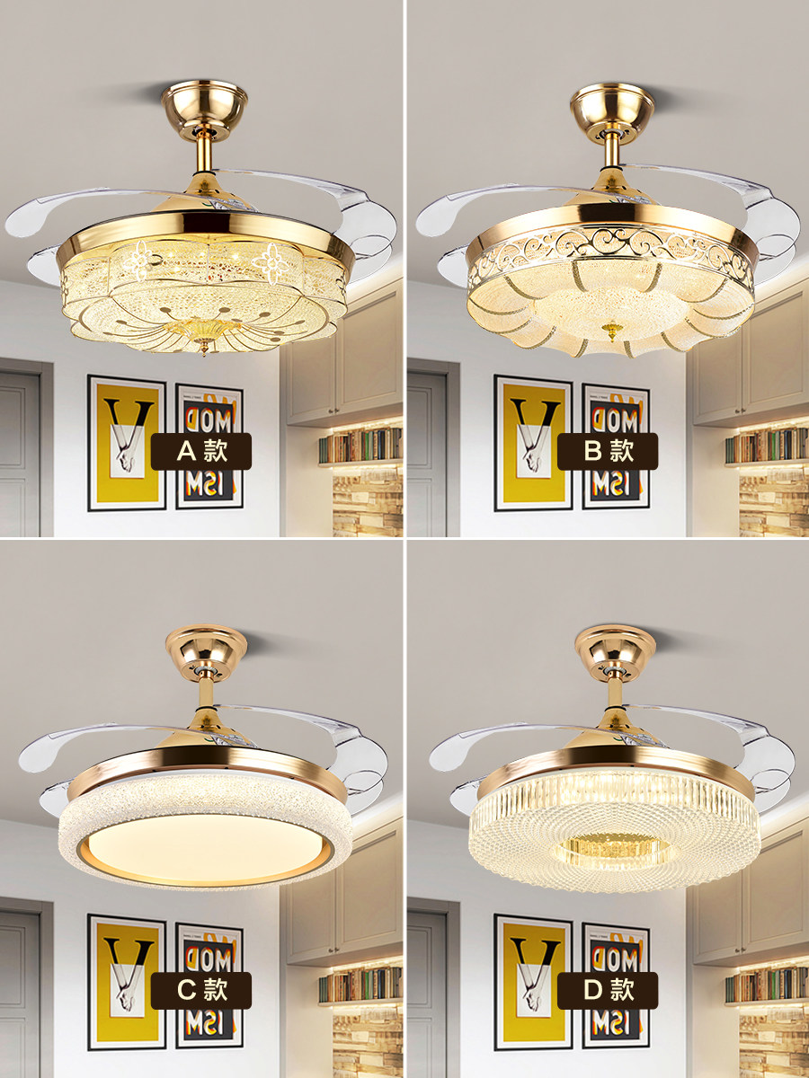 Aohong variable frequency fan light European style light luxury restaurant fan light household full spectrum eye protection living room invisible ceiling fan light