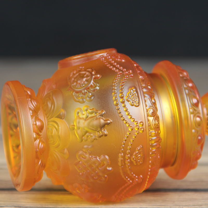 Qingxiutang home decoration supplies tantric for Buddhist artifact glazed exquisitely carved eight auspicious god of wealth lotus vase