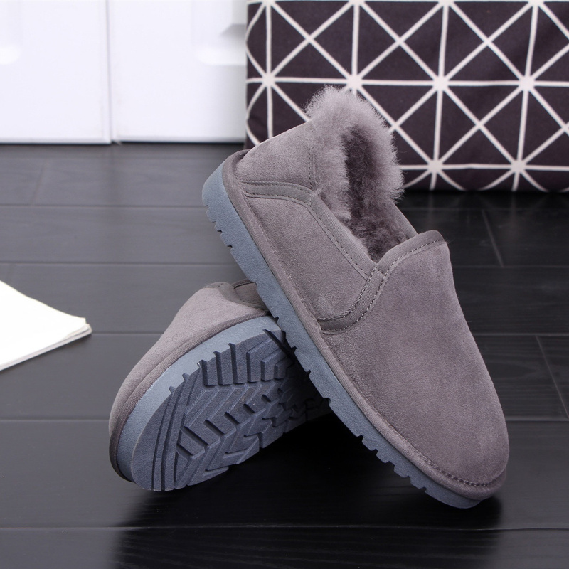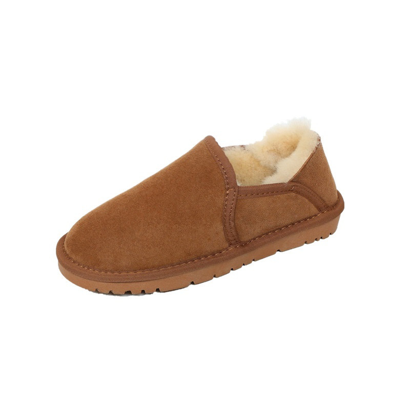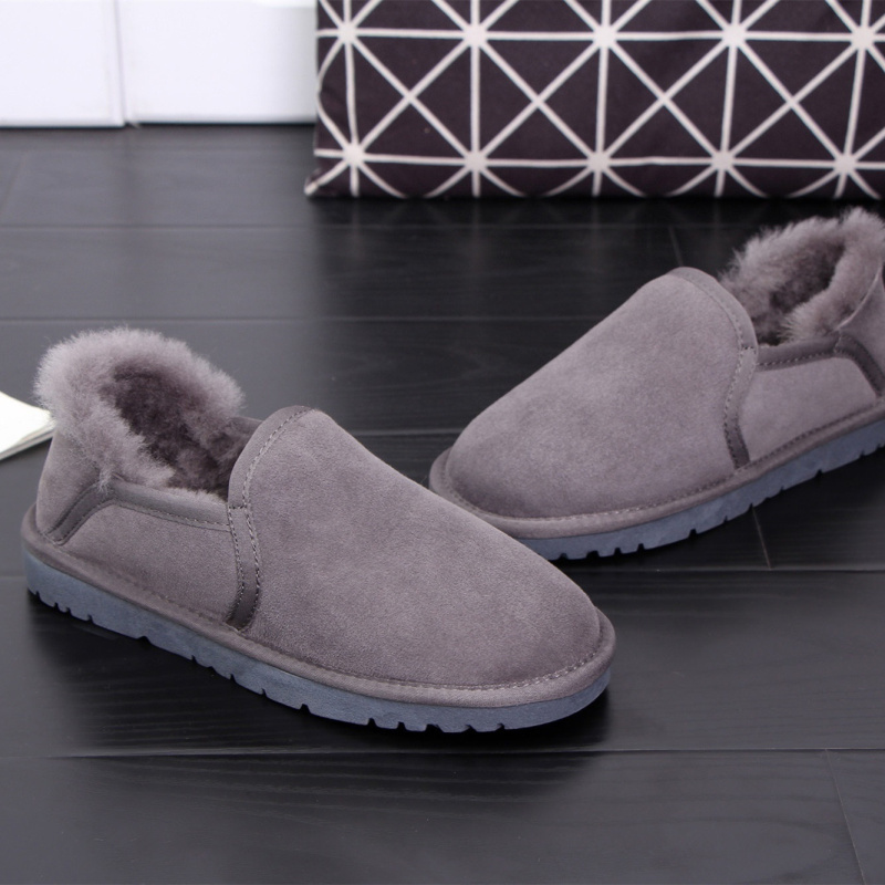 Sheepskin and fur one-piece snow boots Peas shoes men's autumn and winter one pedal thickened pure wool slip-on shoes couples two cotton shoes