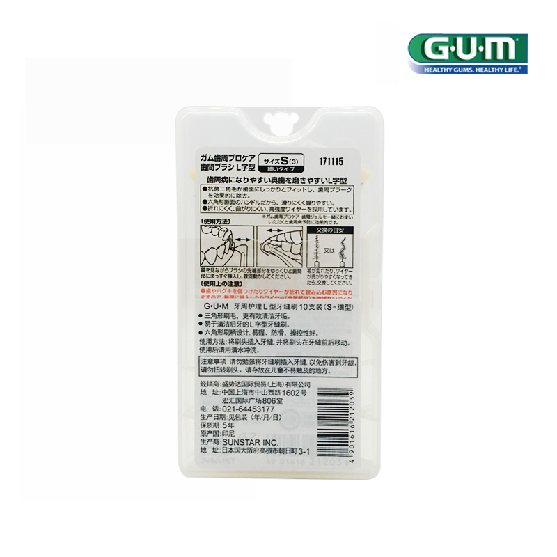 Japan GUM Quan Shikang interdental brush tooth gap brushing Department dental seam brush L Type 10 S code