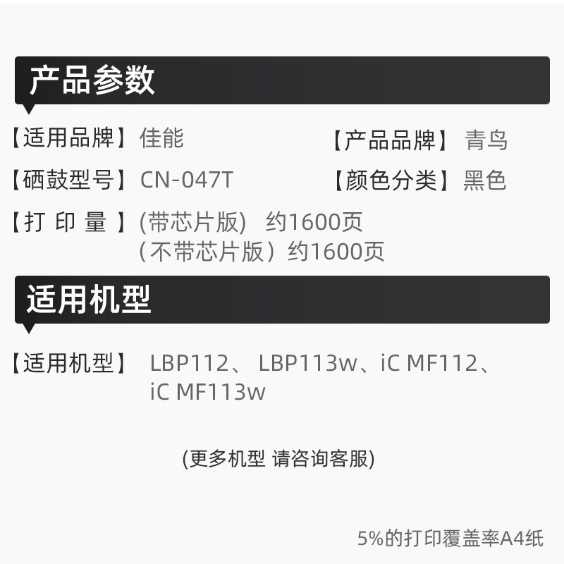 QINGNIOA Bluebird CN-047T Easy to add Powder Cartridge for Canon MF113w MF112 LBP113w LBP112 Printer