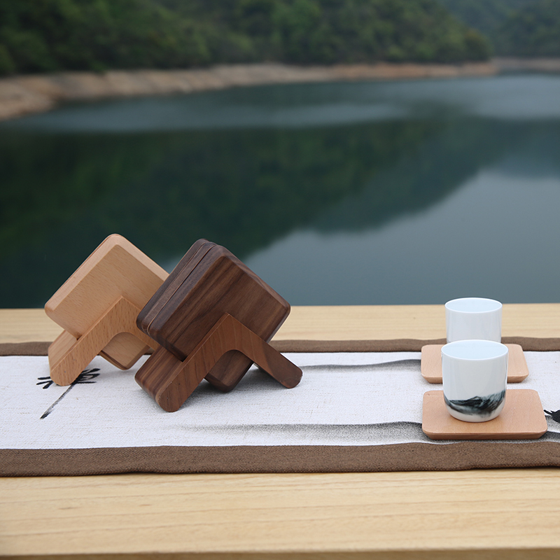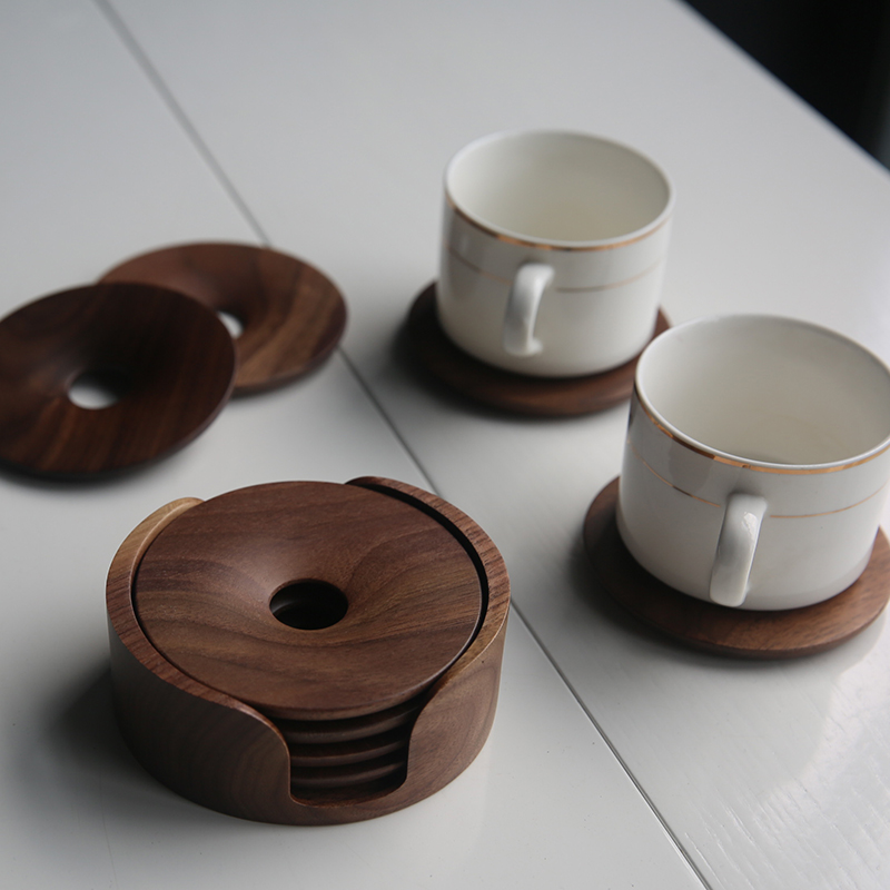 Black walnut whole wood coaster set round solid wood cup holder coffee insulation pad square round Cup cushion cover
