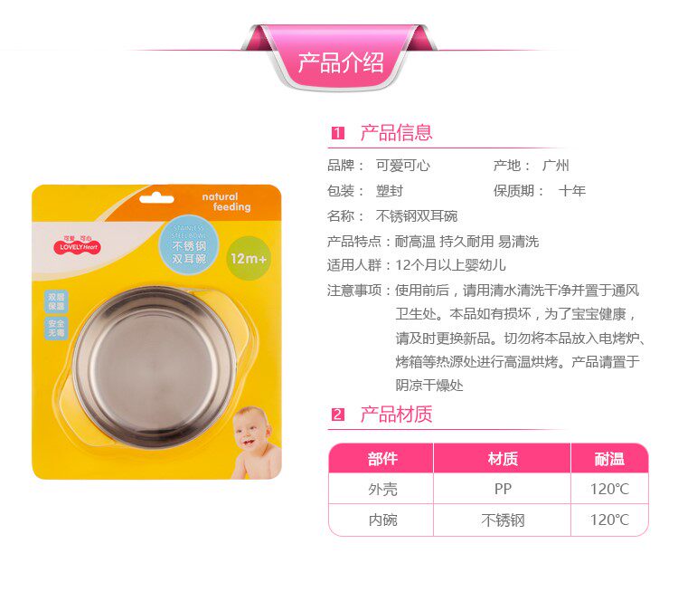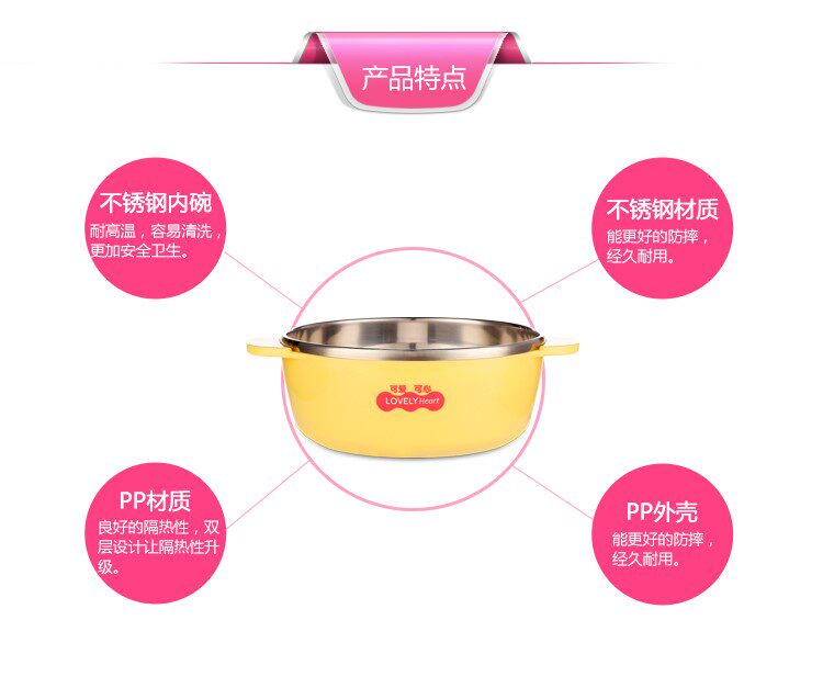 Cute heart stainless steel binaural tableware bowl liner food grade 304 stainless steel drop resistance can be high temperature resistant