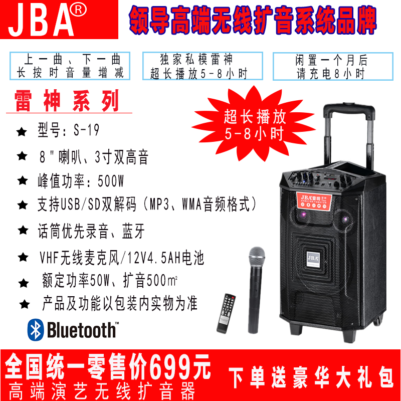 New original American JBA brand S-19 bluetooth trolley outdoor karaoke promotional mobile square dance audio