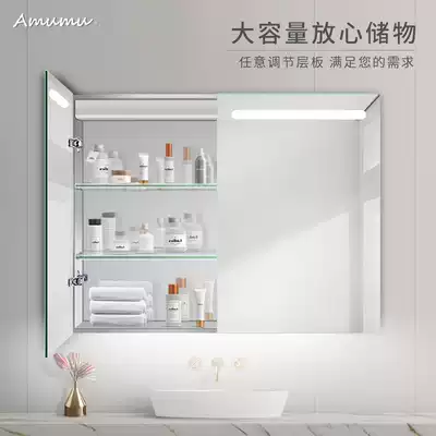 Smart bathroom mirror cabinet Separate luminous bathroom mirror powder room mirror cabinet Space aluminum wall-mounted bathroom mirror cabinet wall-mounted