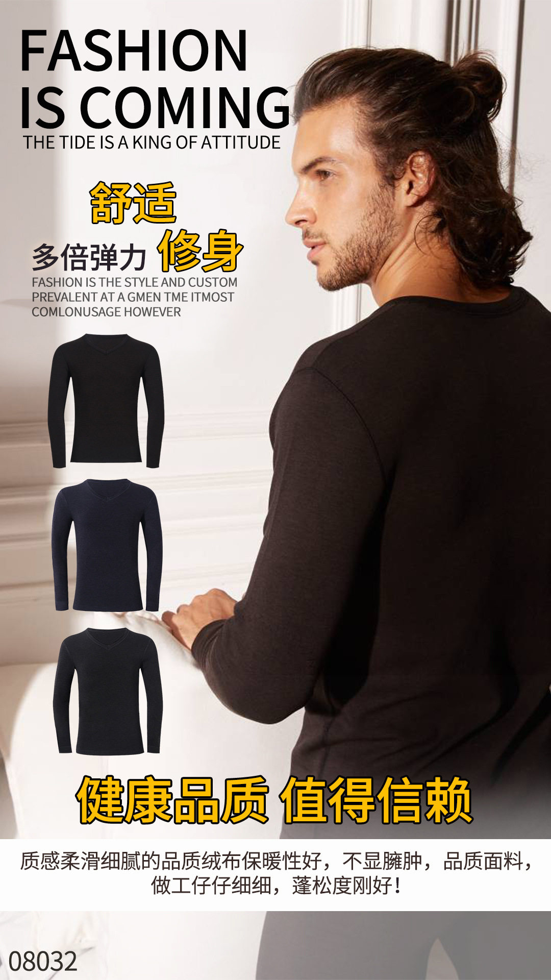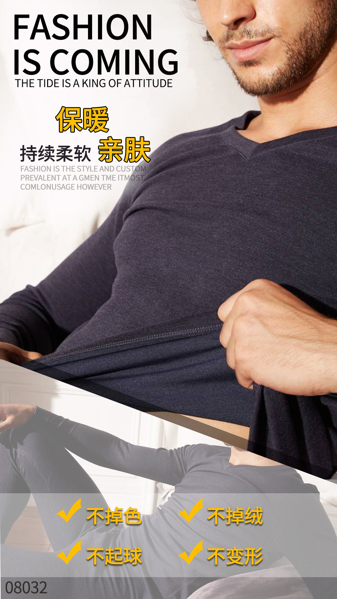 New autumn and winter comfortable Taichi velvet V-neck slim skin-friendly men's heating pants Elastic base autumn clothes sanitary pants