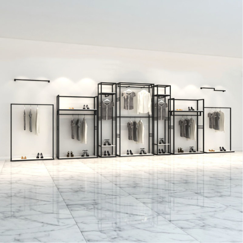 Clothing Store Show Shelves Landing Style Men's And Women's Clothing Shelves Display Rack Clothes Shelf Double Hangers Hanger