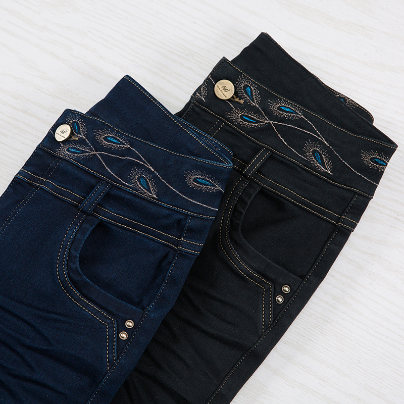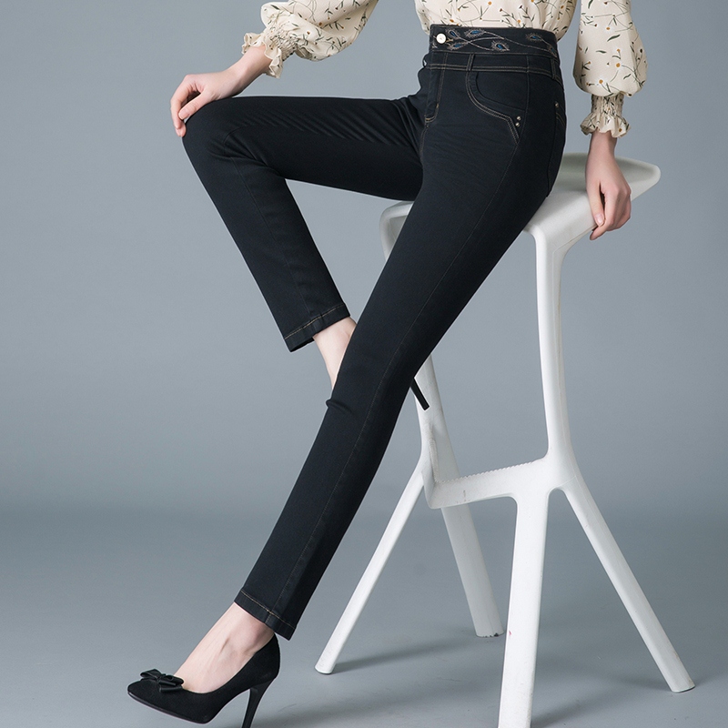 Jeans women's spring and autumn 2022 new middle-aged and elderly women's trousers loose straight-leg pants elastic high-waist trousers mother's trousers