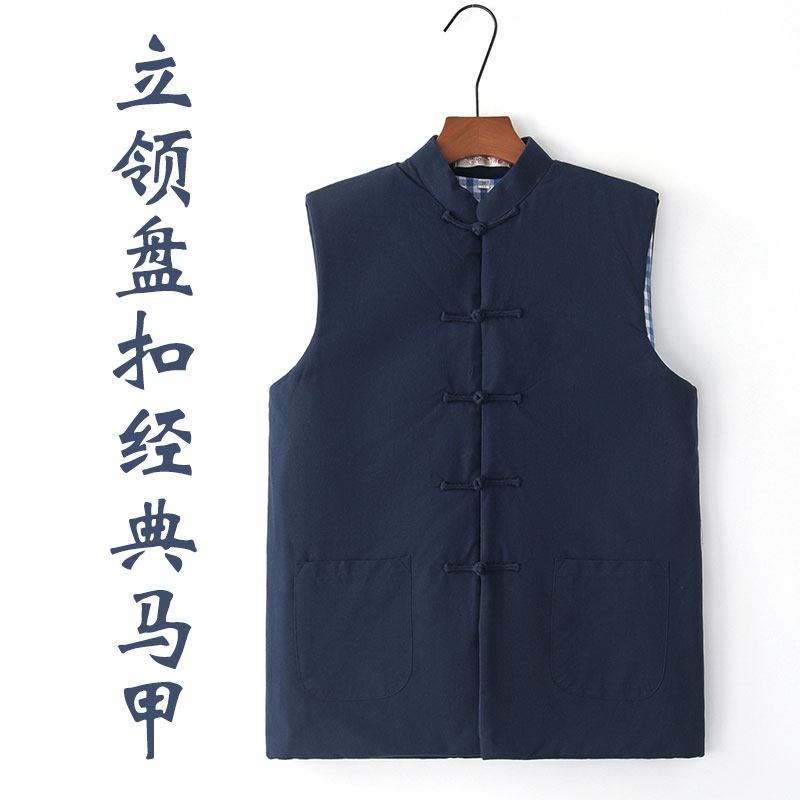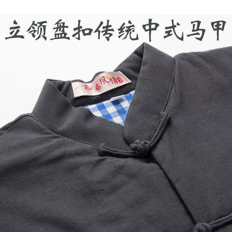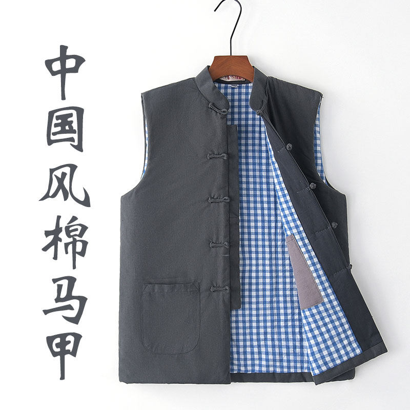 China Wind Men's Bottling Men Mid-Aged Cotton Kan Shoulder Men Cotton Horse Chia Autumn winter Horse Vest Collar Pan Buttoned Hanfu