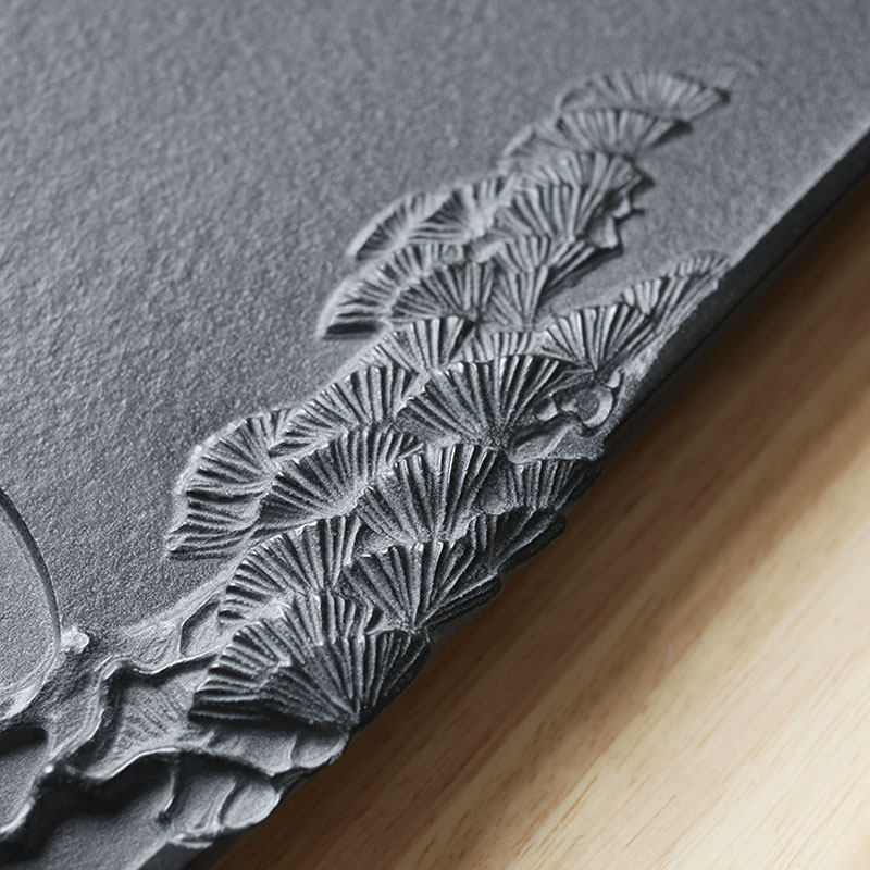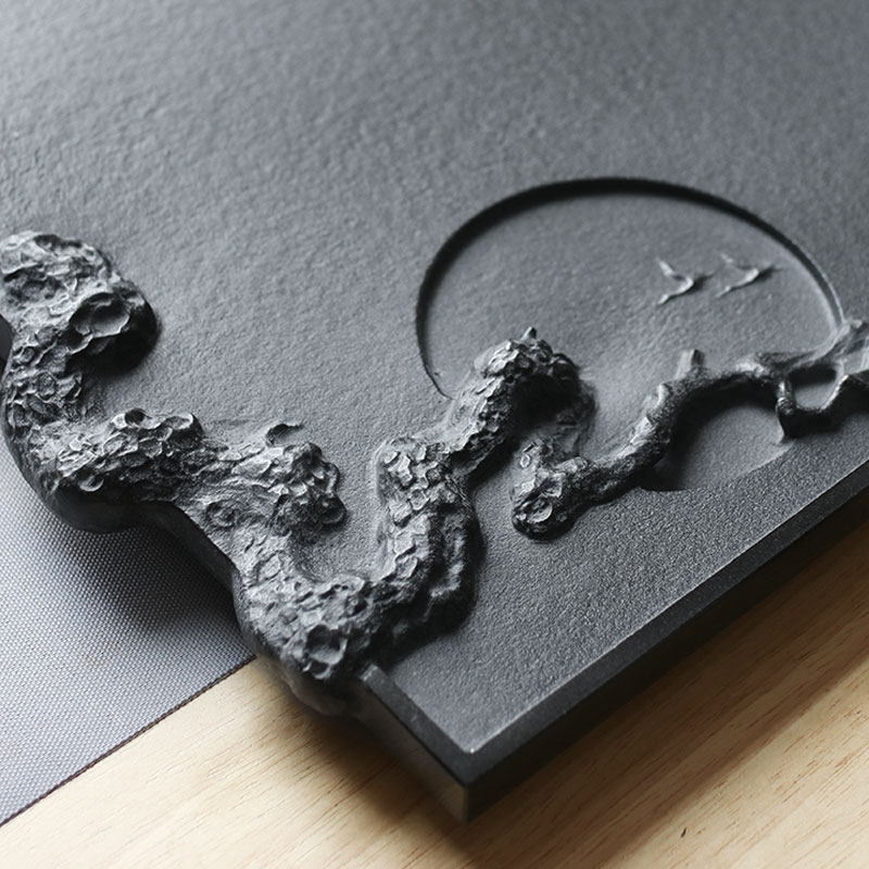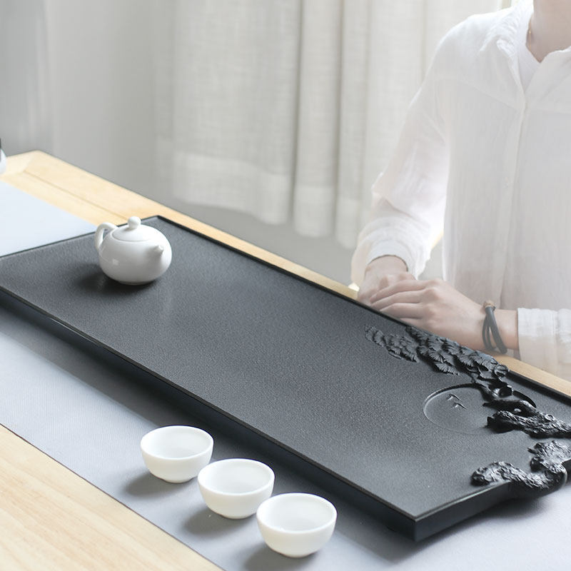 Park Hao Master handmade drainage Ukkim tea tray Home Black gold stone tea desk Natural stone Small size tea Deer