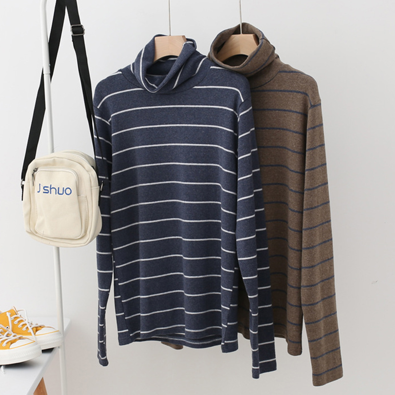 Strip high-collar blouse autumn and winter menu thin T-shirt pure cotton thickness conventional coat