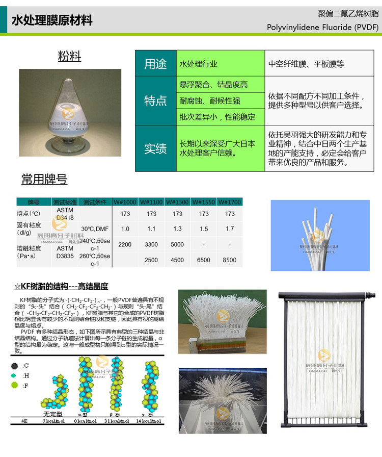 kureha polyvinylidene fluoride PVDF Japan Kureha powder high and low molecular weight binder film water treatment film