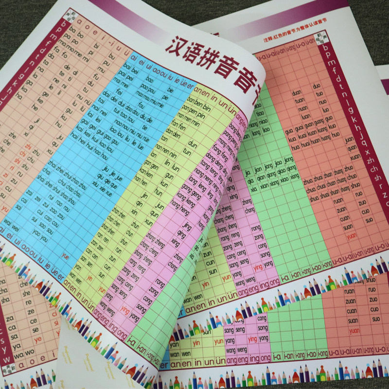 Children's Phonetic Alphabet Alphabet Alphabet Alphabet Alphabet read full Table Wall stickup Primary school students Han Chinese pinyin syllables Full table wallchart