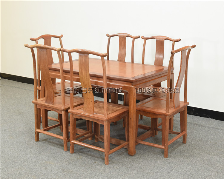Burmese rosewood mahogany dining table rectangular table big fruit red sandalwood Ming style furniture dining chair dining table combination raw grinding single board