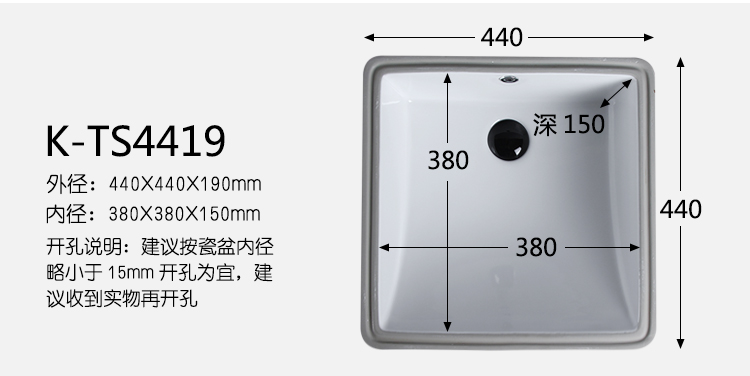 440 by 440 square undercounter basin wash basin embedded balcony wash basin toilet bathroom ceramic wash basin