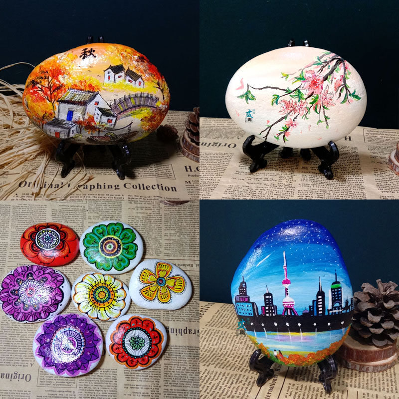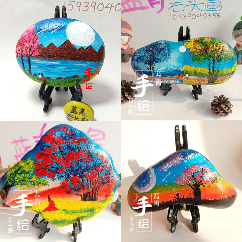 Stone Painting Finished Wedding Handpainted Diy Student Creative Goose Pebble Painted Landscape Katong Comic Book Birthday Present