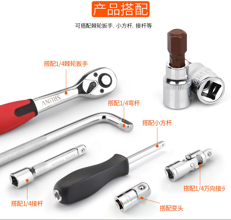 Small flying pressure batch sleeve 1 4 inches 6 3mm hexagonal cross one-word flower-shaped plum blossom wrench batch head screw head