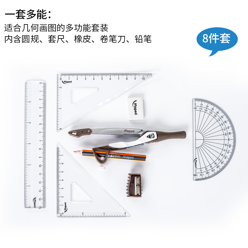 Lower single sending pencil MAPEDMaped compasses innovative intelligent compasses 8 pieces of sleeves ruler 3 pieces of suit students metal compasses drawing tool exam supplies