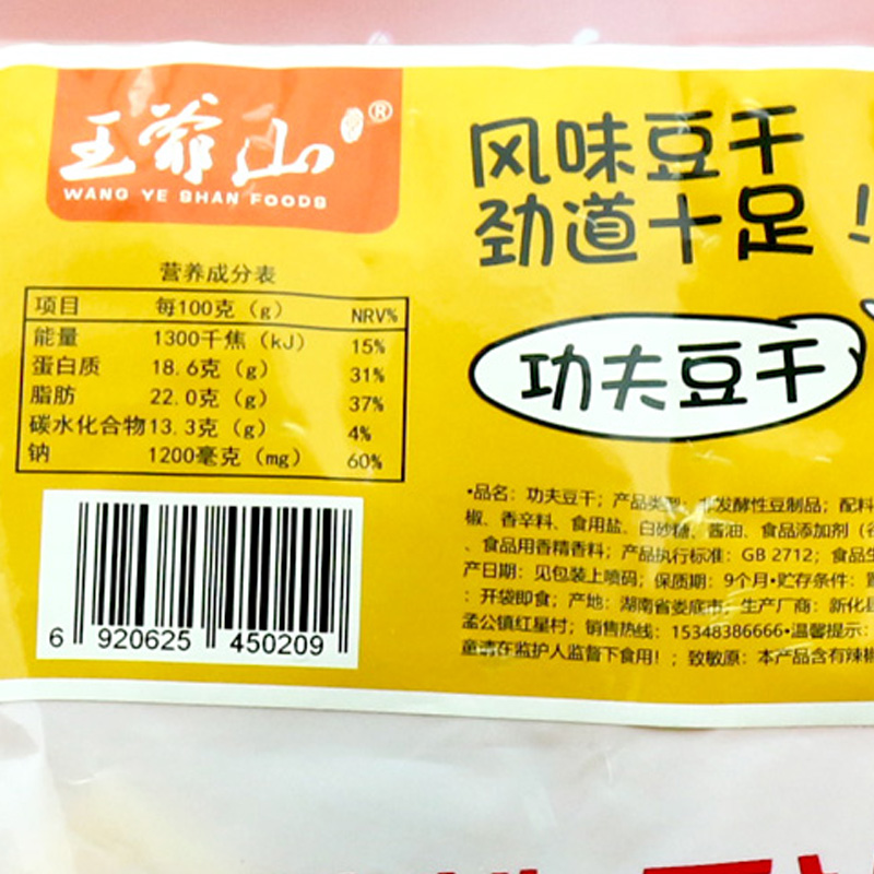 Wangyeshan Kung Fu Dried Tofu 500g Lengshuijiang Hunan Xinhua Spicy Tofu Spicy Braised Dried Office Mixed Flavor