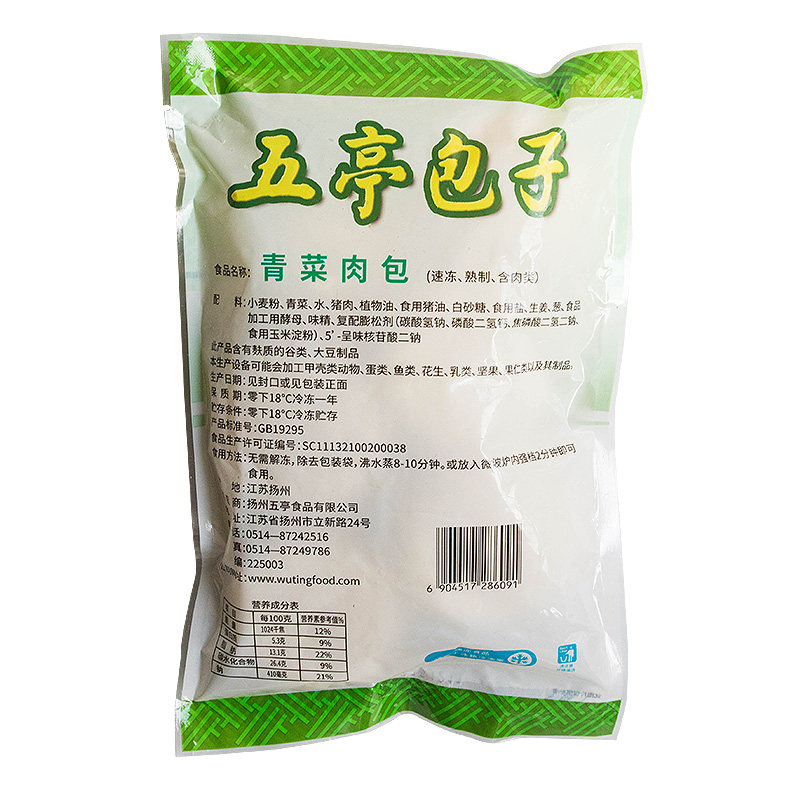 Five Pavilions Pazi Yangzhou Terfic Nutritional Breakfast Frozen Bunk Frozen Green Vegetables Meat Bunk Pastry Pastry 50g * 6 only