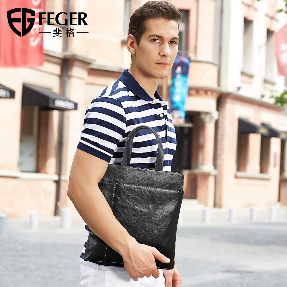 Feige men's handbag leather vertical business briefcase men's 2021 new fashion office bag trendy men's bag
