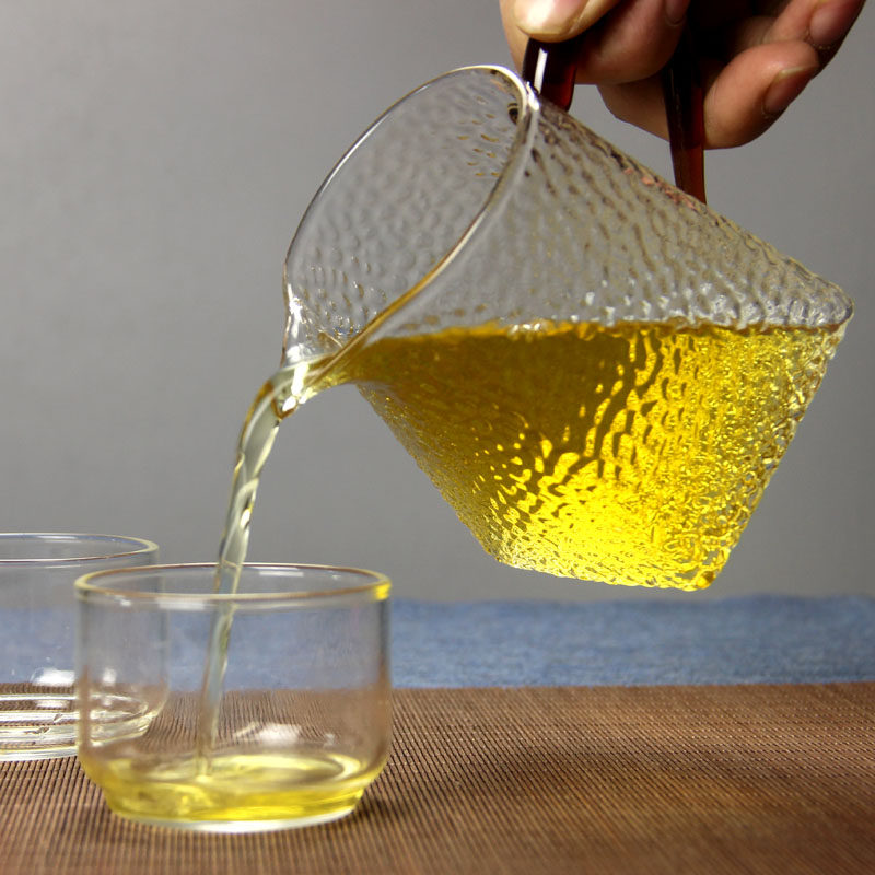 Japan-style hammer grain heat resistant glass fair cup korn tea Tea Sub tea Tea Leaf with transparent Gongcup Long Mouth Handmade Tea Cup