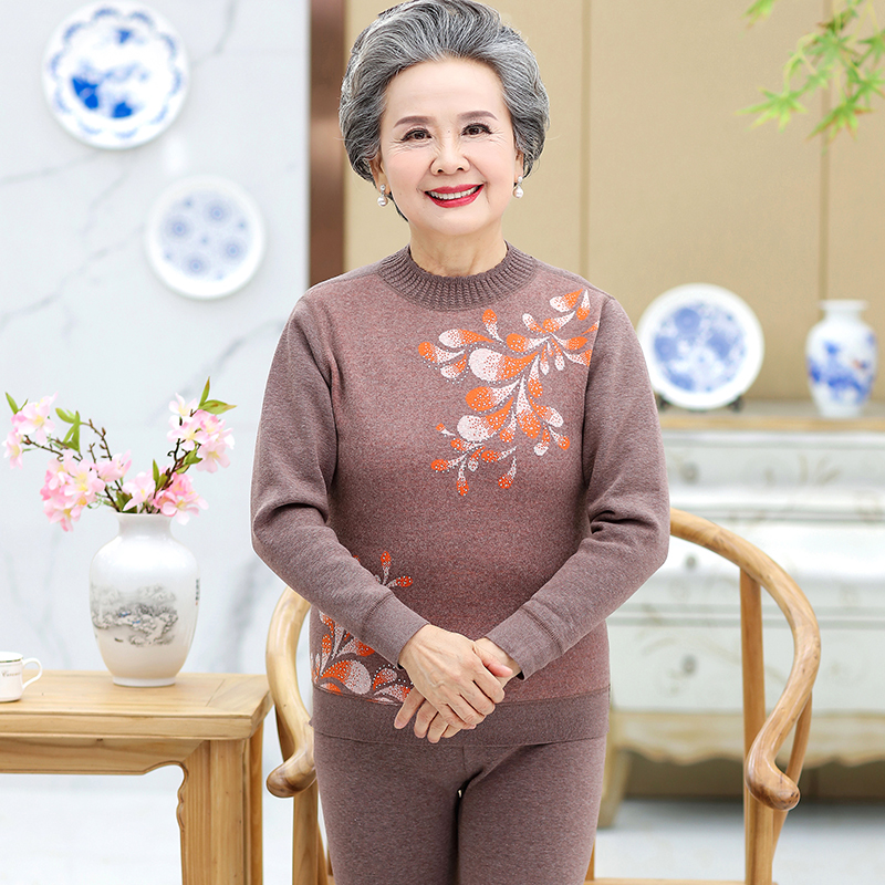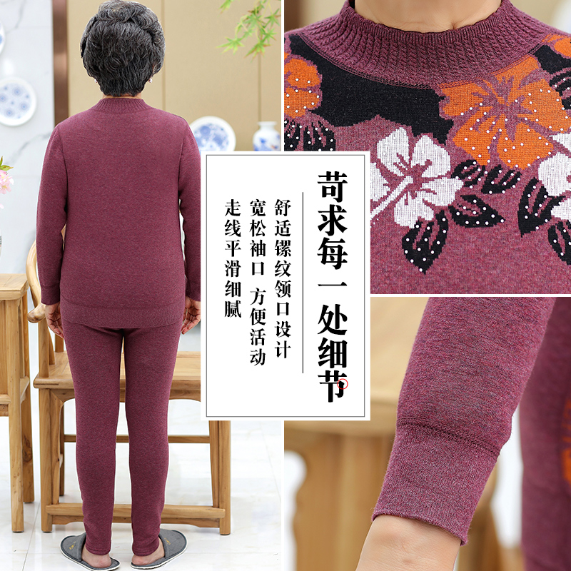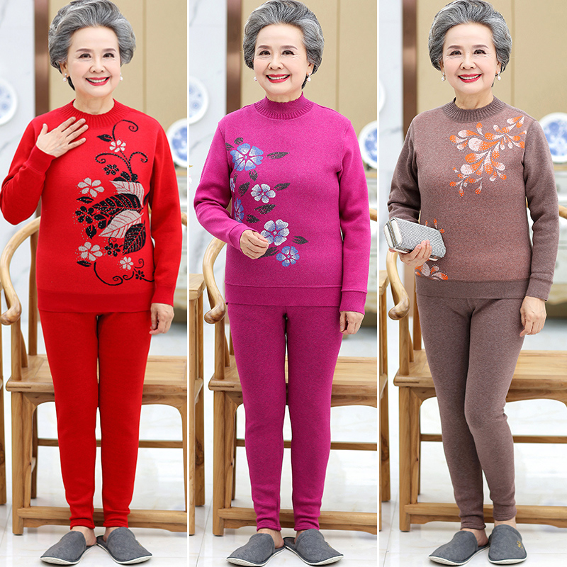 Cotton grandma winter clothes mother thermal underwear suit middle-aged and elderly women 60 years old 7080 elderly plus velvet thickened wife