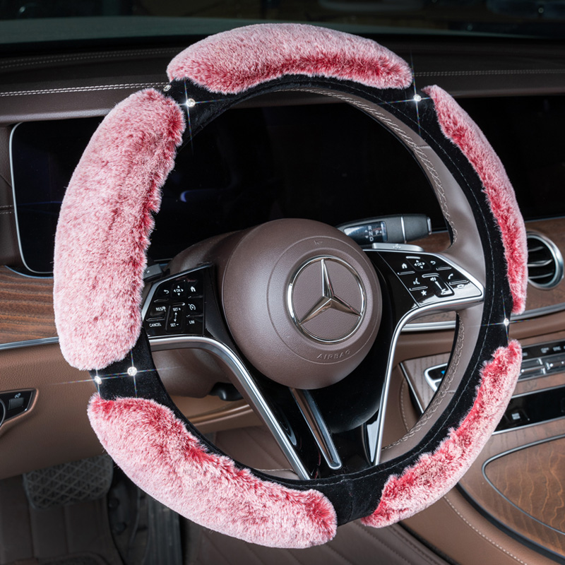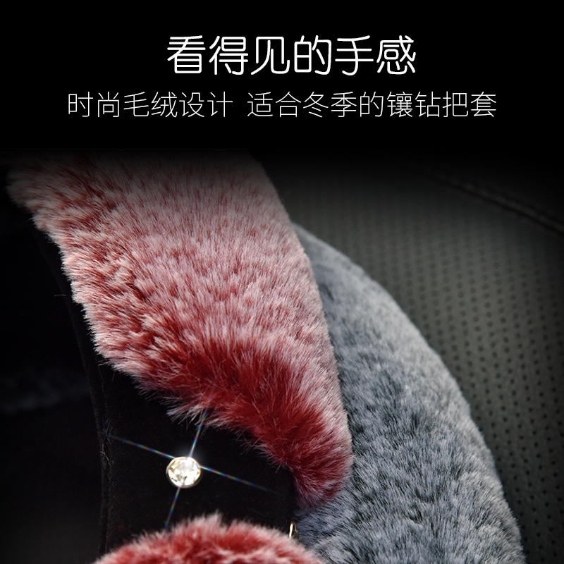 Steering wheel cover winter short plush universal Korean cute fashion male and female inlaid drill to decorate the cover of the car-Taobao