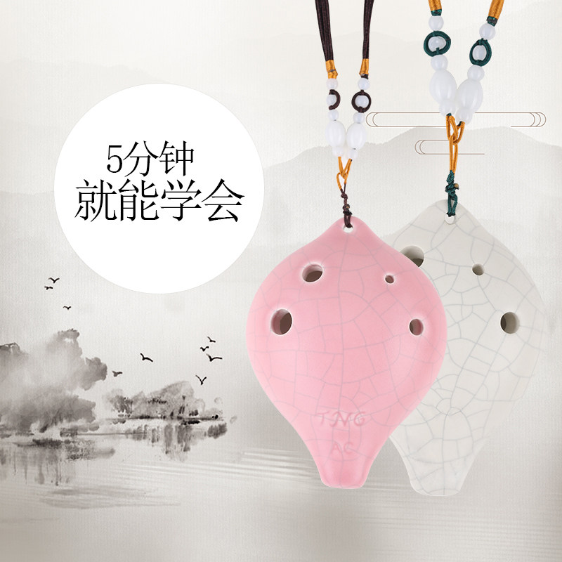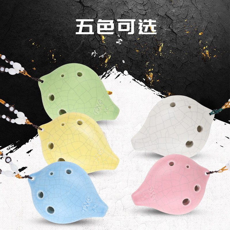 TNG Ocarina six-hole beginner introduction to send teaching materials 6-hole alto C tone heart-shaped crack glazed children's professional ceramics