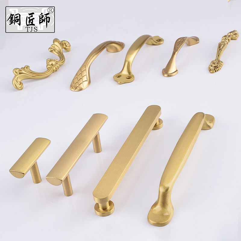 New Chinese Brass Handle Nordic Style Wardrobe Door Handle Cabinet Subdrawer Light Lavish Golden Kitchen Brass Handle