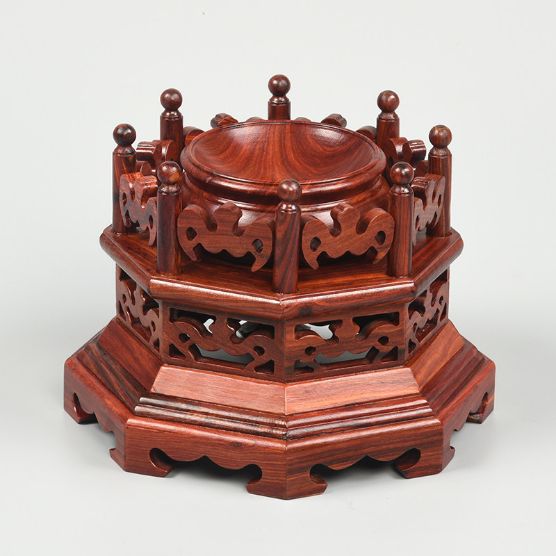 Solid wood carved crystal ball gossip gossip base walnut egg carving night pearl groove rotating bottom rack