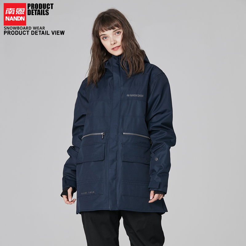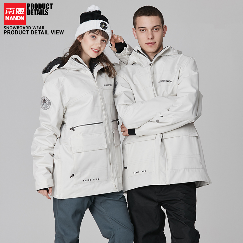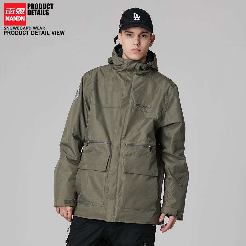 NANDN ski suit men's and women's double snowboard jacket waterproof padded cotton powder black and white army green slim fit